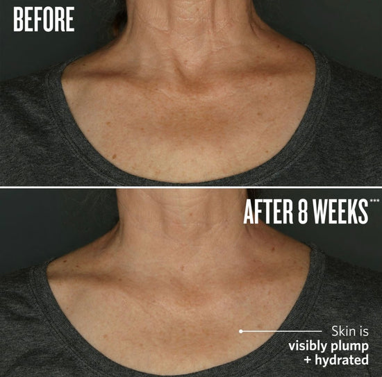 -Humecta profundamente la piel, incluso las áreas delicadas propensas a la pérdida de humedad y a las señales de envejecimiento (como el cuello y el pecho).